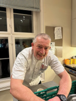 Håkon Haldorsen sammen med sin stab i komiteen og Follo Catering serverte de, som vanlig, et topp måltid bestående av aperitiff, fersk skrei med lever/rogn og valgfri drikke til maten.